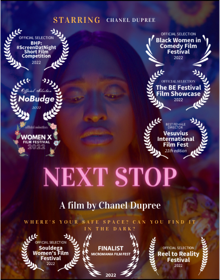 Chanel Dupree is an award winning screenwriter and director based in NYC. Her second film “Next Stop” earned her “Best Female Director” and is currently streaming on NoBudge. Chanel has written in several writers’ rooms, including her web series “Black Retail” that won her “Best Comedy” & “Best Web series”. A winner of Spec that Scene, a finalist for Women Write Now, finalist of BLACK BOY/GIRL WRITES MEDIA and A fellow of BRIC’s Screenwriters Lab, Chanel’s work can be found on Shadow & Act, HuffPost and African Voices.
